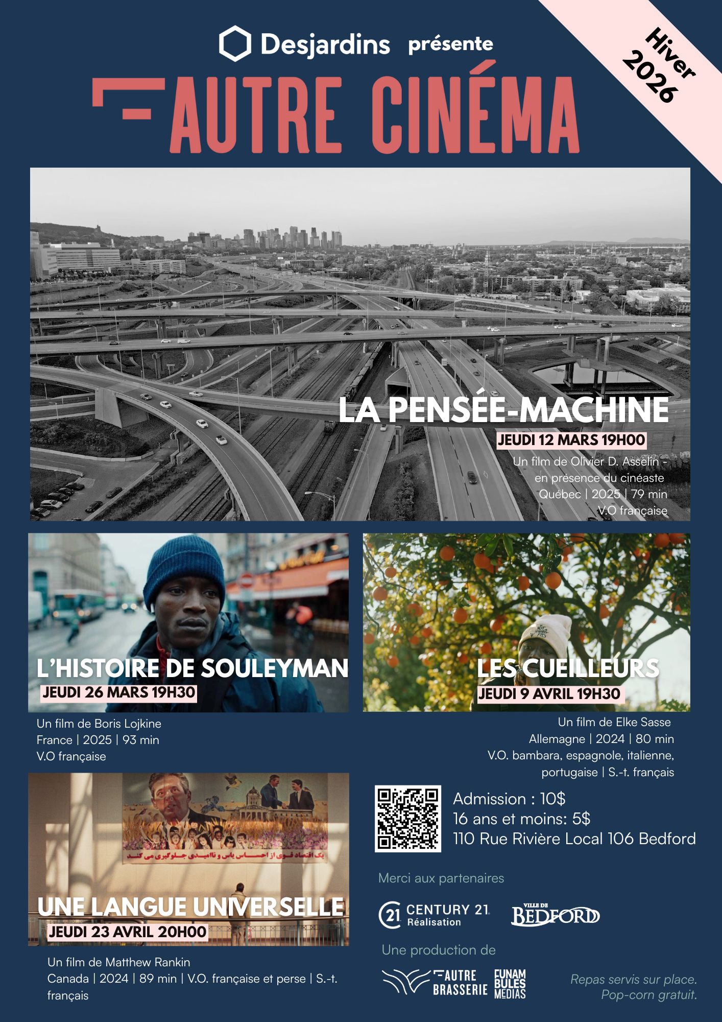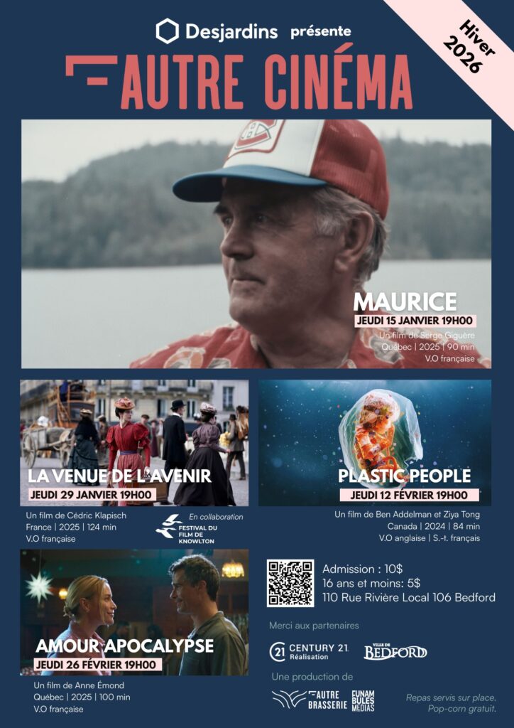 L’Autre Cinéma, an initiative of L’Autre Brasserie and of Funambules Médias, offers a program of auteur fiction and documentary films from here and elsewhere in Bedford, in the Eastern Townships.