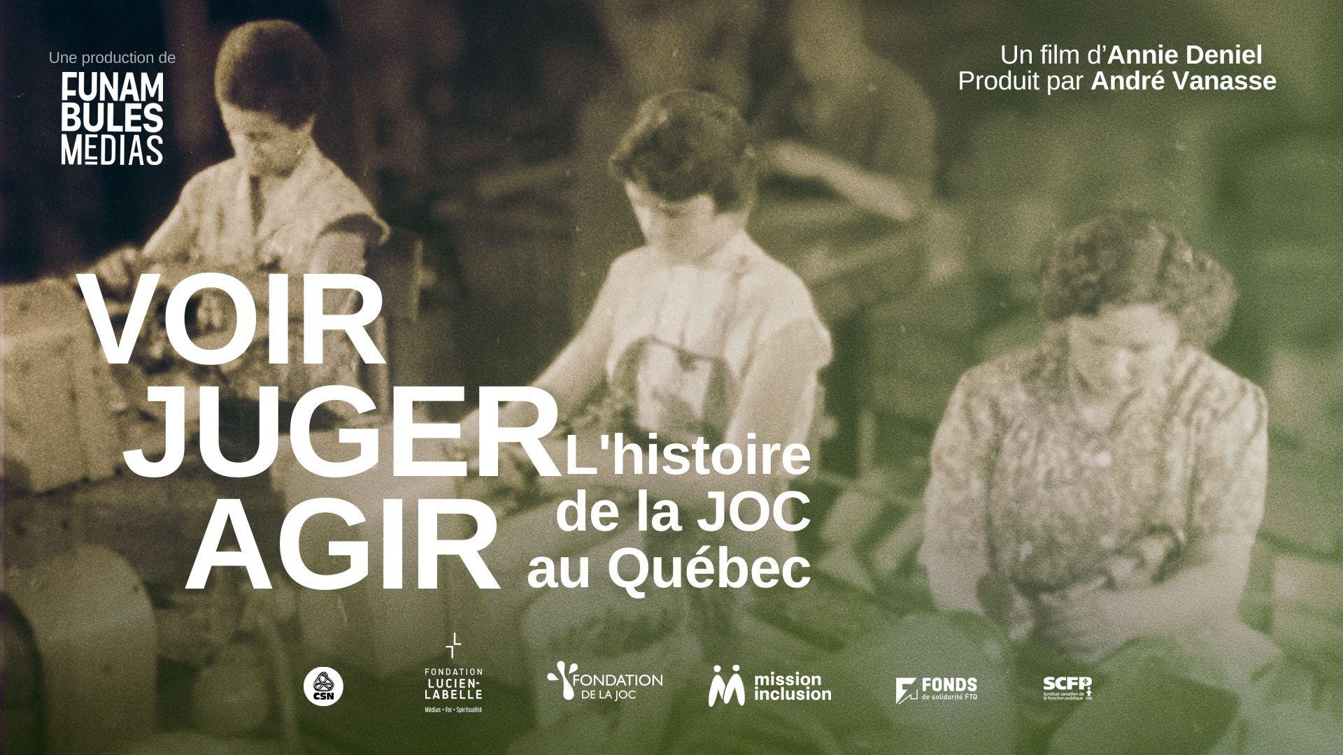 Voir — Juger — Agir : L’his­toire de la JOC au Québec explores the over­looked his­to­ry of the Jeunesse Ouvrière Catholique (JOC), a grass­roots labor move­ment deeply root­ed in Quebec’s work­ing-class neigh­bor­hoods since the 1930s. Through pow­er­ful tes­ti­monies, nev­er-before-seen archival footage, and expert analy­sis, the film reveals near­ly a cen­tu­ry of youth-led social activism dri­ven by a pur­suit of jus­tice and sol­i­dar­i­ty. From church base­ments to fem­i­nist and labor strug­gles, this thought­ful and polit­i­cal­ly engaged doc­u­men­tary looks back at the last­ing impact of the JOC and its deci­sive role in the upheavals of the Qui­et Revolution.