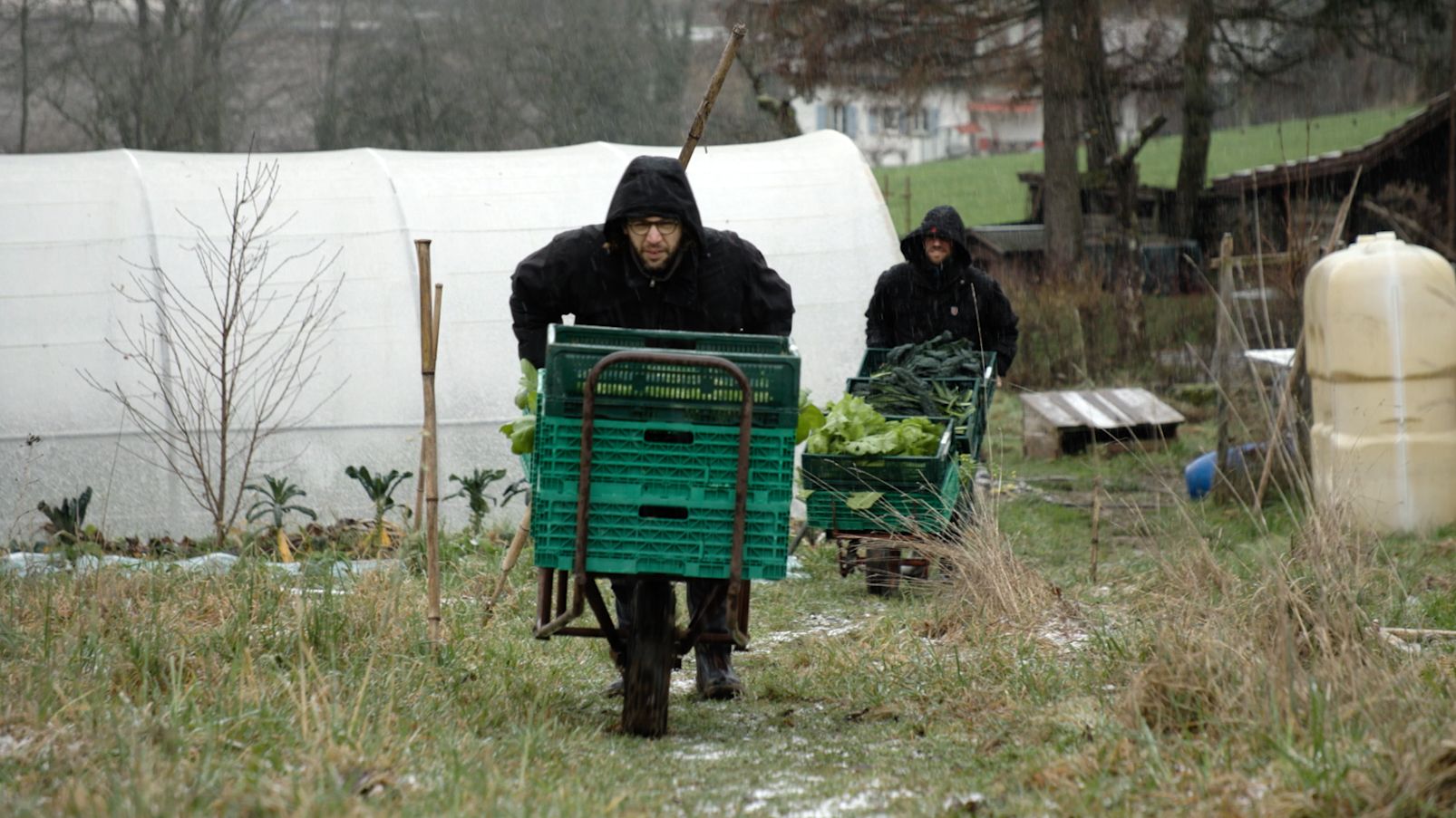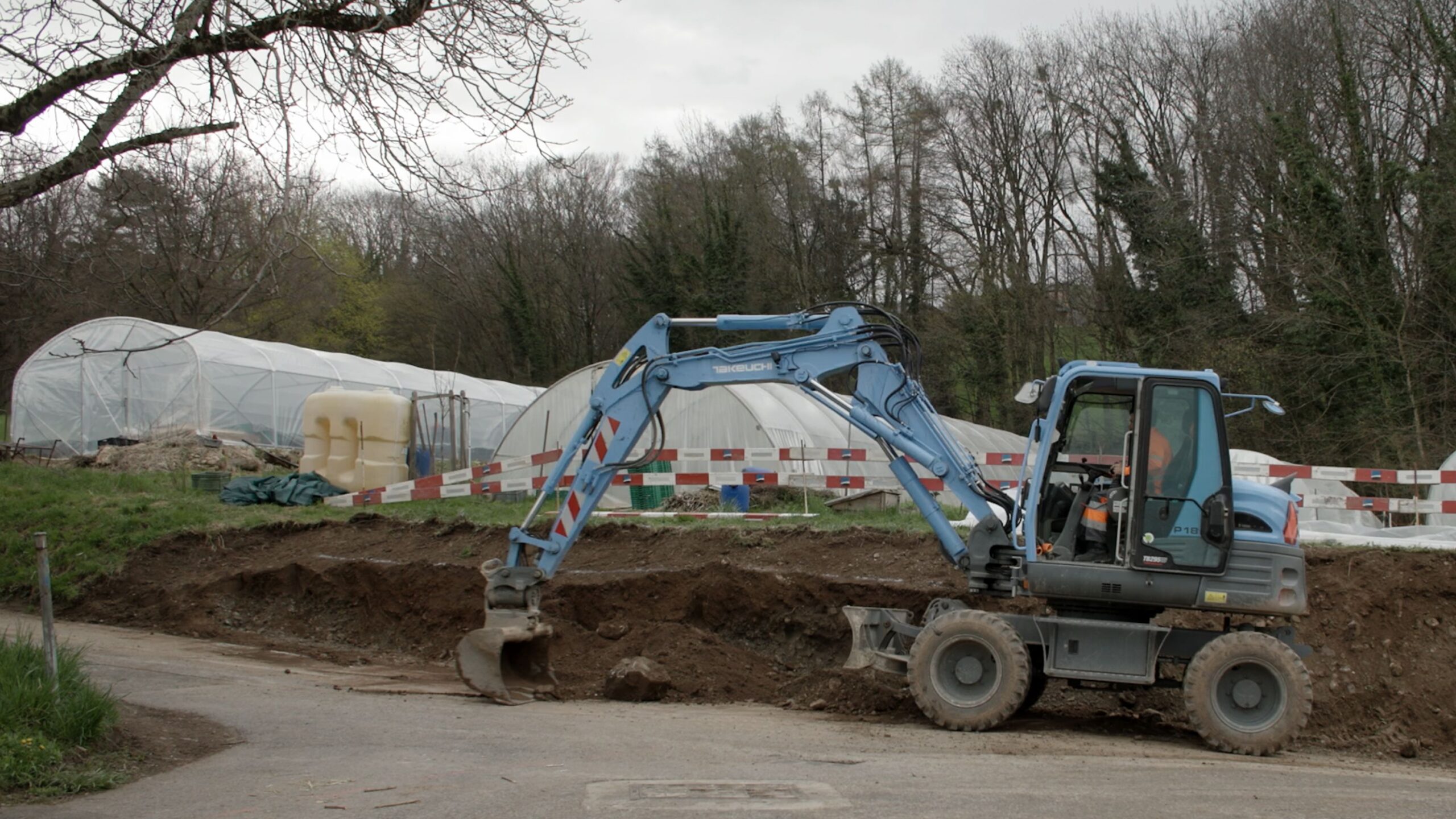 Depuis 3 ans, Pierre-Gilles et Antoine exploitent le terrain de Praz Bonjour pour y cultiver des légumes de manière entièrement naturelle. Ce travail n’est pas de tout repos, faisant face à des menaces quotidiennes : climat changeant, ravageurs, maladies… sans compter la pression financière qui pèse lourd. L’année 2023 a commencé avec un défi de plus : la route qui longe l’exploitation connait des travaux importants, qui compliquent les accès aux cultures. De plus, il faut cohabiter avec les ouvriers, et supporter le bruit.